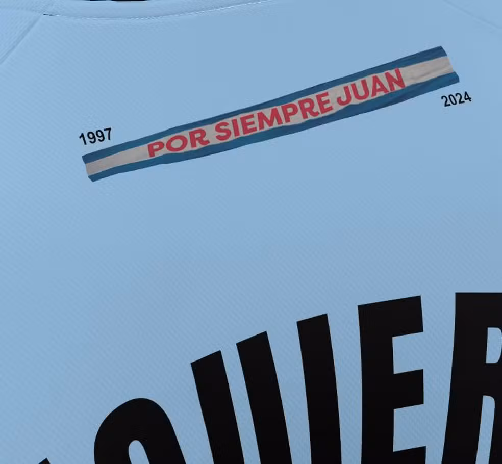 O uniforme, com visual predominantemente azul (remetendo à seleção uruguaia), traz gola e mangas pretas e detalhes que fazem referência ao legado do jogador. Na parte traseira da gola está a mensagem “Por siempre Juan”, acompanhada das datas “1997–2024”, marcando nascimento e falecimento. Por fim, a novidade também traz uma frase comovente estampada entre as bandeiras do Brasil e do Uruguai: